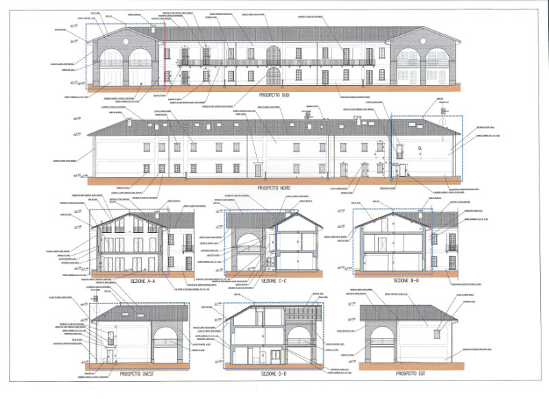 Il progetto riguarda il rifacimento della coibentazione del tetto e del manto in tegole oltre che il rifacimento della facciata.