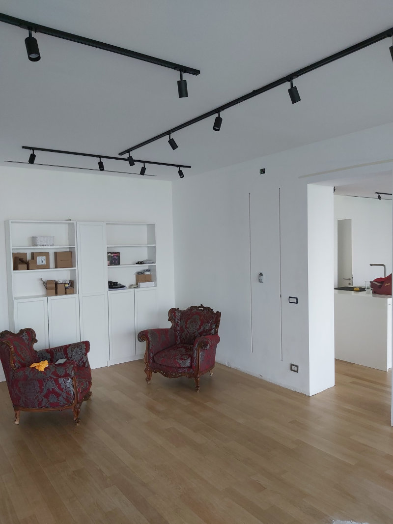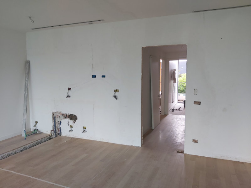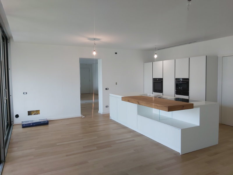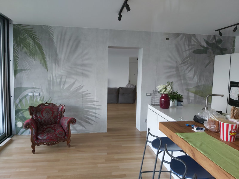Il progetto ha riguardato la ristrutturazione puntuale della zona giorno per ricavare una cocuna a isola, e la riqualificazione di due bagni con la posa di nuovi rivestimenti a parete e nuovi sanitari completi di rubinetterie. Anche le pareti della sala e del soggiorno sono state ricqualificate con l’inserimento di un rivestimento in carta da parati.
