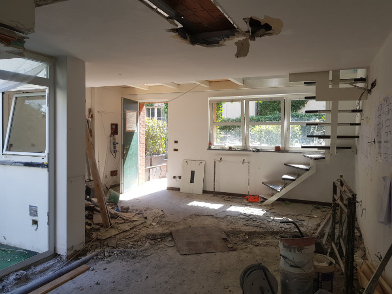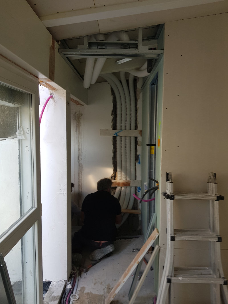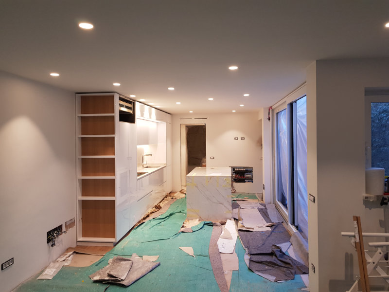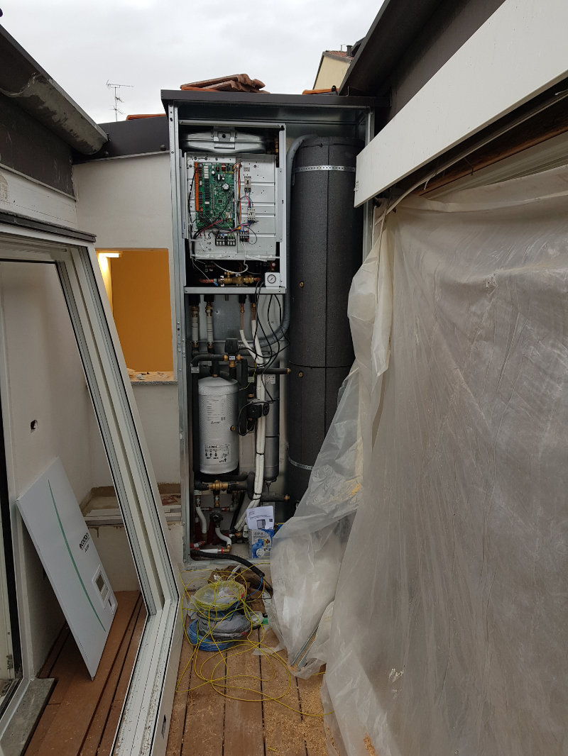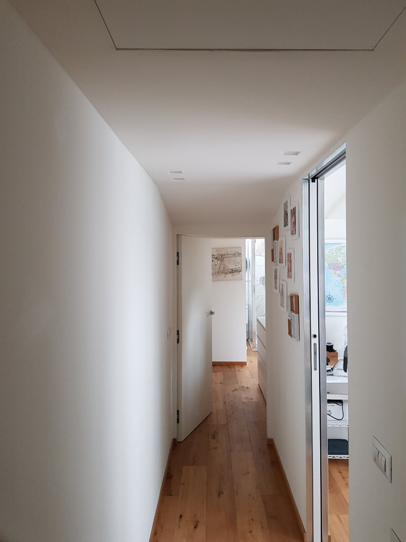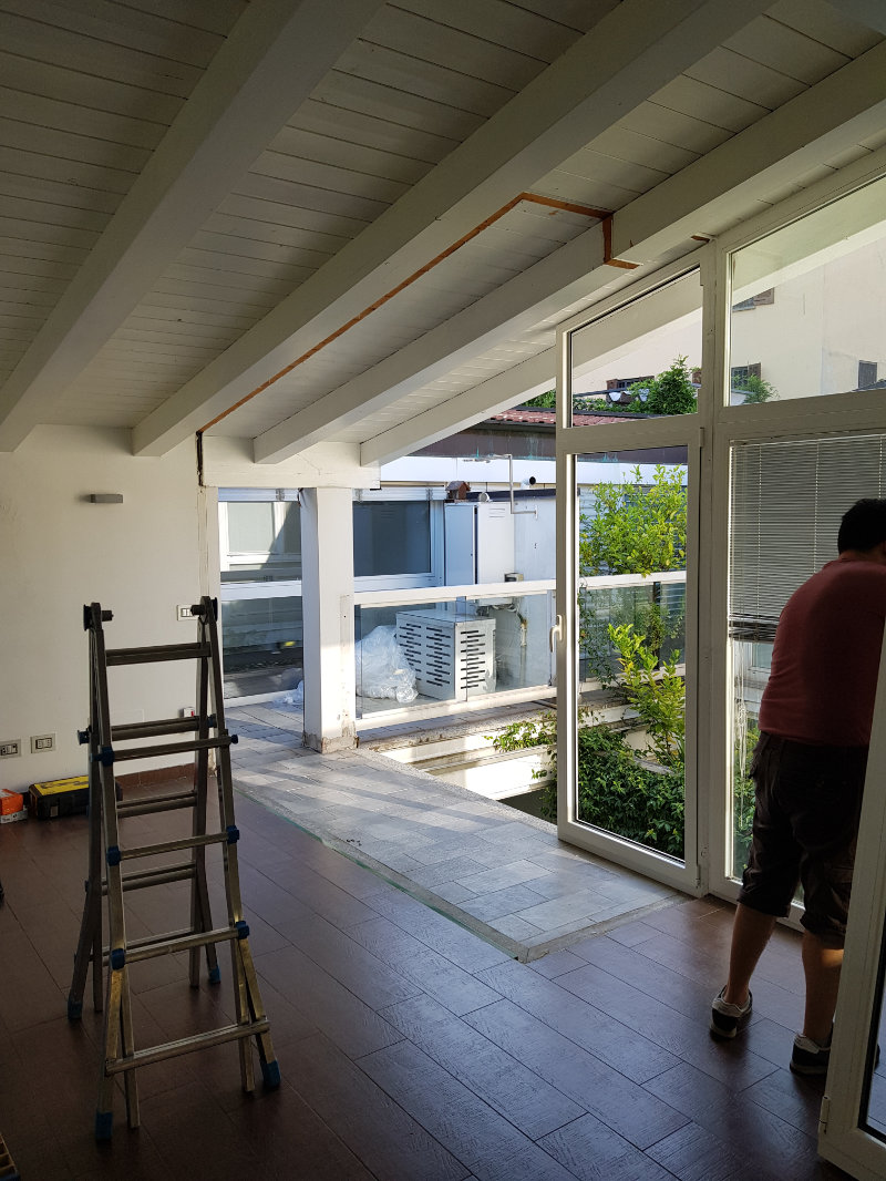 L’intervento a riguardato anche il rifacimento di tutti gli impianti elettricie e di riscaldamento e raffrescamento con la realizzazioen di un impianto radiante con funzione sia di riscaldamento che di raffrescamento con l’integrazione di un impianto di aria primaria canalizzato.