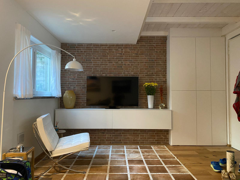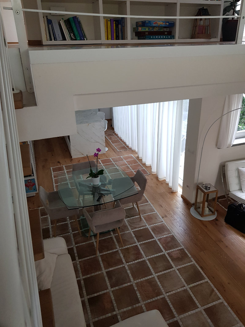 Il progetto ha riguardato la ristrutturazione intergrale dell’appartamento realizandu due nuovi bagni, uno al piano ingresso, nella zona giorno, e uno al piano superiore per la camera padronale. La creazione di un grande opens space al piano terra con cucina a isola e un soggiorno, mentre al piano superiore sono stete ricavate due camere da letto e un soggiorno privato.