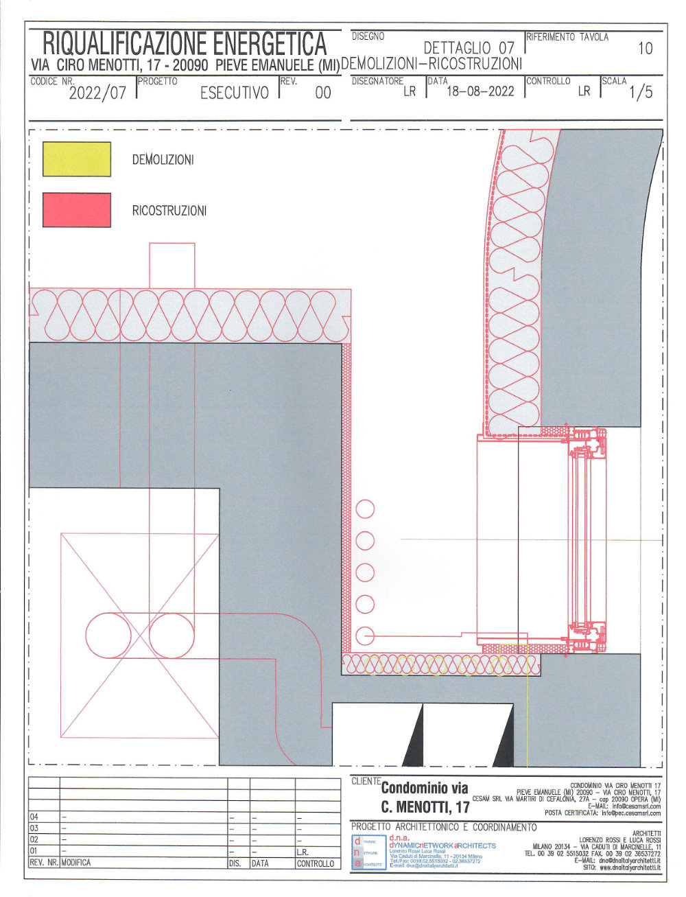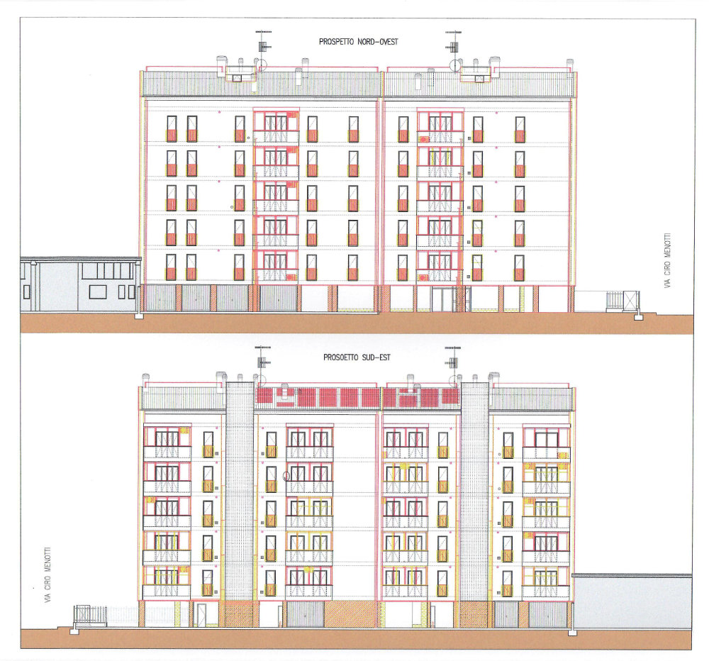 Il progetto di riqualificazione edilizia con Superbonus prevede il rifacimento dei balconi, dei serramenti, delle facciate con realizzazione di un cappotto e della copertura e la realizzazione di nuovi impianti autonomi a gas.